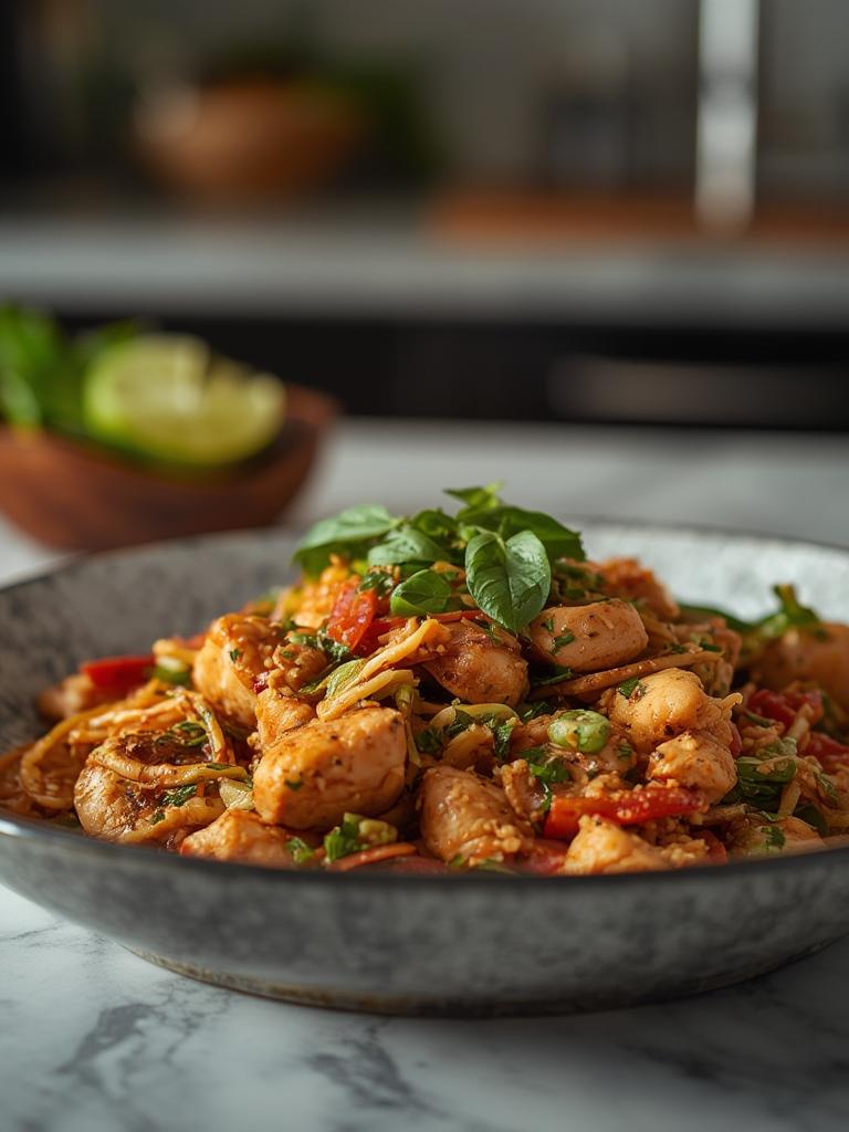 This recipe shines because of its balance of flavors—the fresh basil, garlic, and chilies meld beautifully with the tender chicken. The quick stir-frying technique ensures the chicken remains juicy and the veggies crisp. It’s a dish that truly embodies the essence of Thai cuisine, bringing warmth and comfort with each bite.