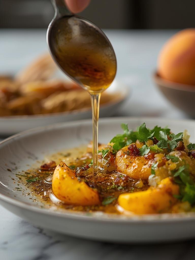 The combination of peaches, honey, and Dijon mustard creates a beautifully balanced vinaigrette. The sweetness of the peach is complemented by the tanginess of the balsamic vinegar, while the Dijon adds a lovely depth. This dressing is versatile and can brighten up any dish, from a simple green salad to grilled vegetables.